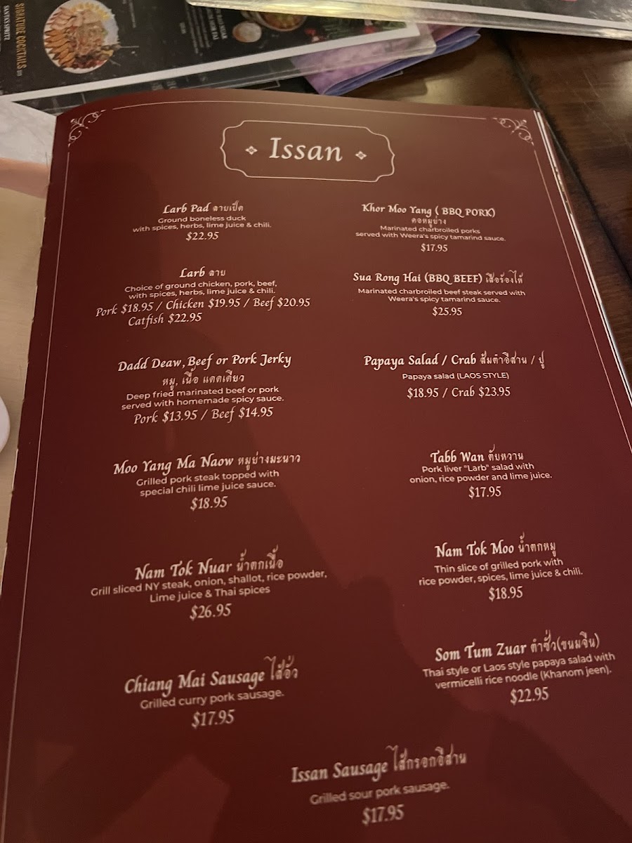 Customer feedback speaks volumes about the overall experience at Weera Thai. One satisfied guest, James Wong, commented on its high ratings, emphasizing its position as one of the best Thai restaurants in the city. He praised both the food quality and service, noting that “the more familiar taste of traditional Thai dishes like Pad Thai, curries” are bound to impress both newbies and seasoned Thai food aficionados alike. Other reviews highlight the friendly and attentive service provided by staff, ensuring your every need is met. You'll feel right at home as you savor each bite and sip on delightful beverages like their Thai Iced Tea or Lychee Cosmo, both priced at an affordable $5.